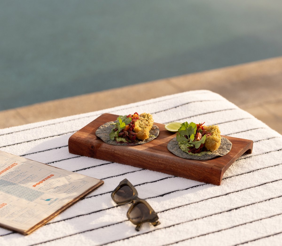 El menú de The Rooftop es un homenaje a los clásicos reinventados: guacamole con aceite de hierbas, tacos con tempura de amaranto, tostadas de camarones con salsa XO, sándwiches con sorprendentes capas de sabor. Todo está elaborado con ingredientes locales, diseñado para compartir y pensado para maridar sin esfuerzo con un cóctel frío o una copa de vino fresco del Valle de Guadalupe.