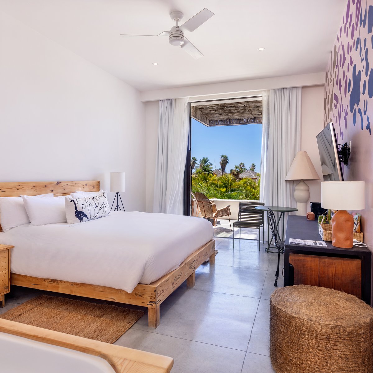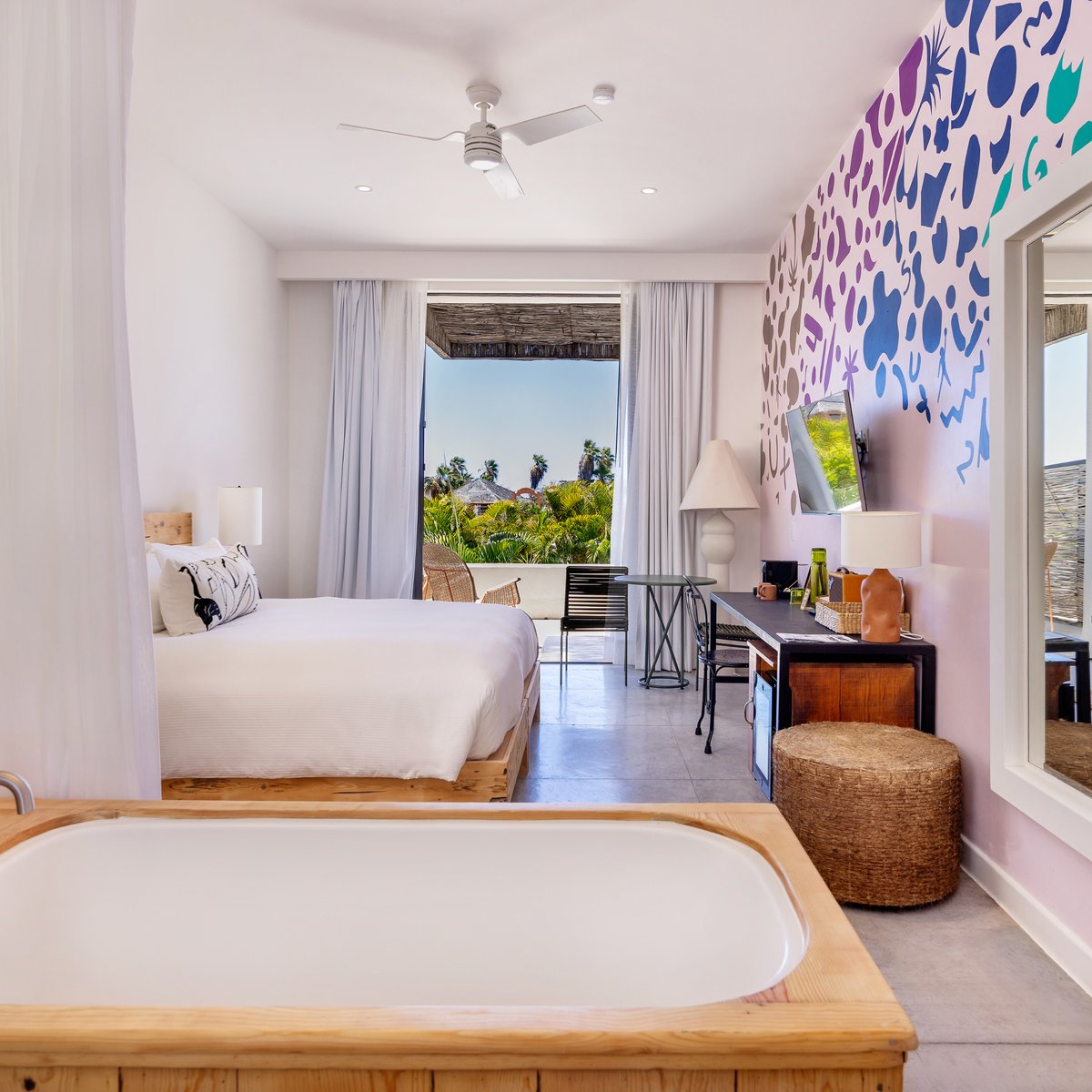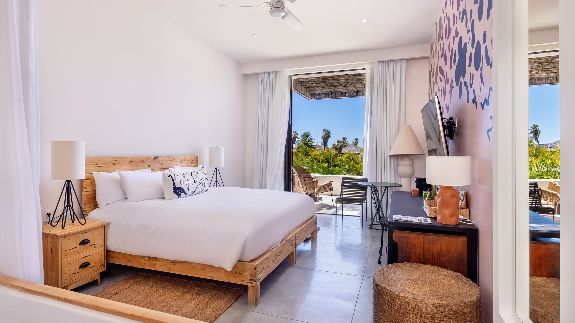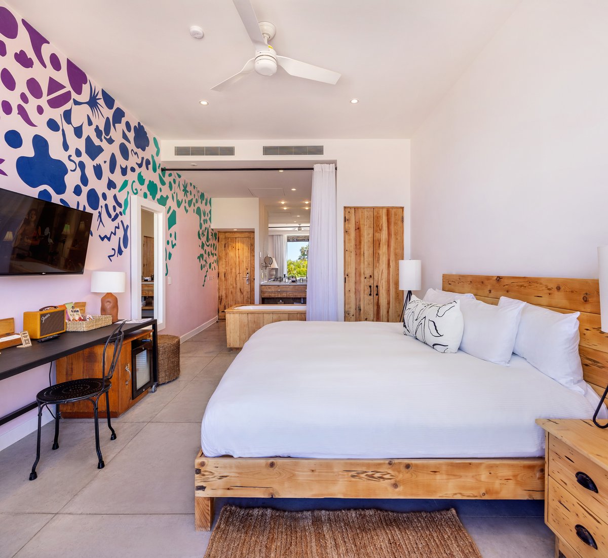 Diseñada para relajarse por completo, esta exclusiva habitación cuenta con un jacuzzi interior, una amplia terraza con jacuzzi exterior con vistas al puerto deportivo y detalles artesanales que mejoran cada estancia. Tanto si disfrutas solo como si compartes el momento, es un espacio creado para el descanso profundo, la reflexión creativa y el placer tranquilo.