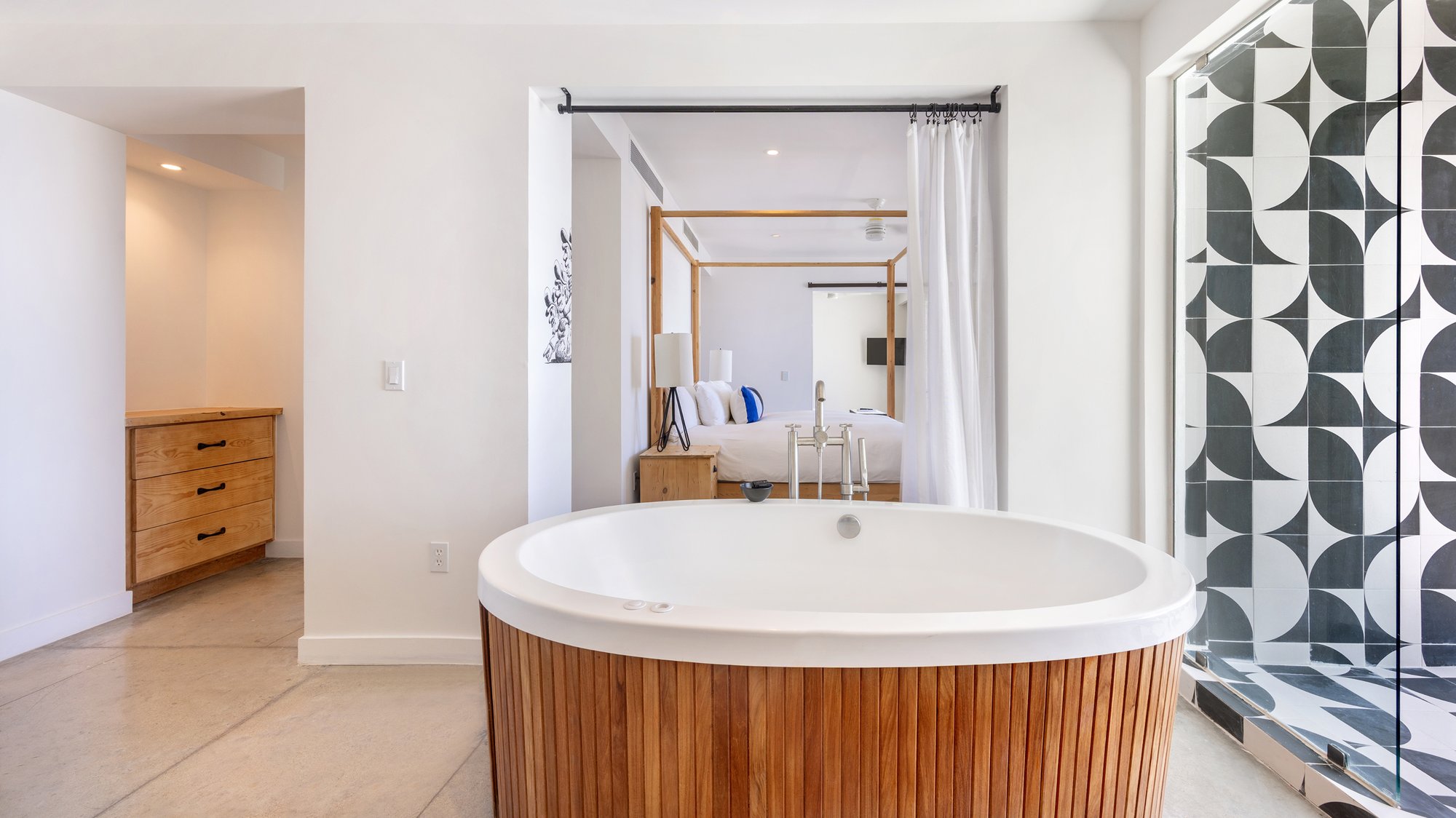 Esta suite de un dormitorio te invita a relajarte, acomodarte y sintonizar con tu propio ritmo. Con una distribución amplia, amenidades cuidadosamente seleccionadas y un diseño que equilibra la forma con la sensación, es ideal para estancias prolongadas, descanso profundo o retiros creativos. Cada detalle te susurra: tómate tu tiempo.
