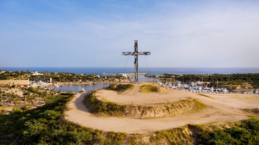 Perched above Puerto Los Cabos, La Cruz is our 360° venue—where mountains rise on one side, the Sea of Cortez opens on the other, and everything in between feels suspended in light. At its center stands the striking iron structure by artist Gabriel Macotela, an avant-garde cross that has become part of the destination’s skyline. As night falls, it illuminates quietly—marking the space as both symbol and meeting point. Known for its breathtaking setting, La Cruz has become a natural stage for ceremonies, celebrations, and moments that call for perspective. It’s a place where the landscape does most of the talking, and every gathering feels elevated—both literally and emotionally. The venue unfolds into two distinct areas: La Cruz Viewpoint, ideal for ceremonies framed by panoramic views, and La Cruz Esplanade, a more open setting that adapts to receptions, dinners, and larger celebrations. Expansive, iconic, and deeply rooted in place, La Cruz is where moments rise—held between sky, sea, and mountain.