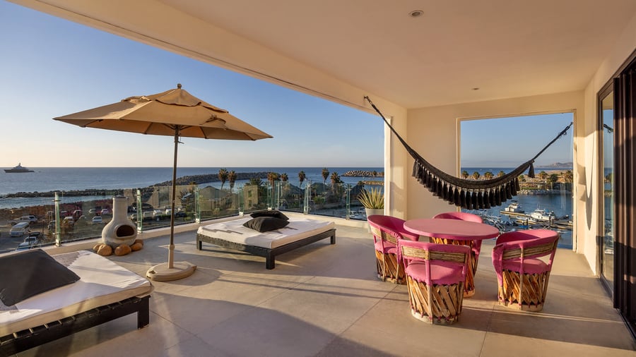 The Captain and Penthouse Suitea, are our largest and most secluded spaces, offering a more intimate way to gather. Overlooking the water, with its own rhythm and quiet, it feels both expansive and personal at once. Inside, the atmosphere is relaxed yet elevated. A private terrace, jacuzzi, and open living areas create the perfect setting to slow down, connect, and settle into the moment, whether it’s the calm before something big or the celebration itself. It’s often chosen for getting-ready rituals, intimate gatherings with close friends, small celebrations, or simply a place to pause and take it all in. Music plays softly, glasses clink, the light shifts over the marina, and time seems to move differently here. Discreet, comfortable, and effortlessly special, The Captain Suite is your own private corner of El Ganzo, designed for connection, anticipation, and everything in between.