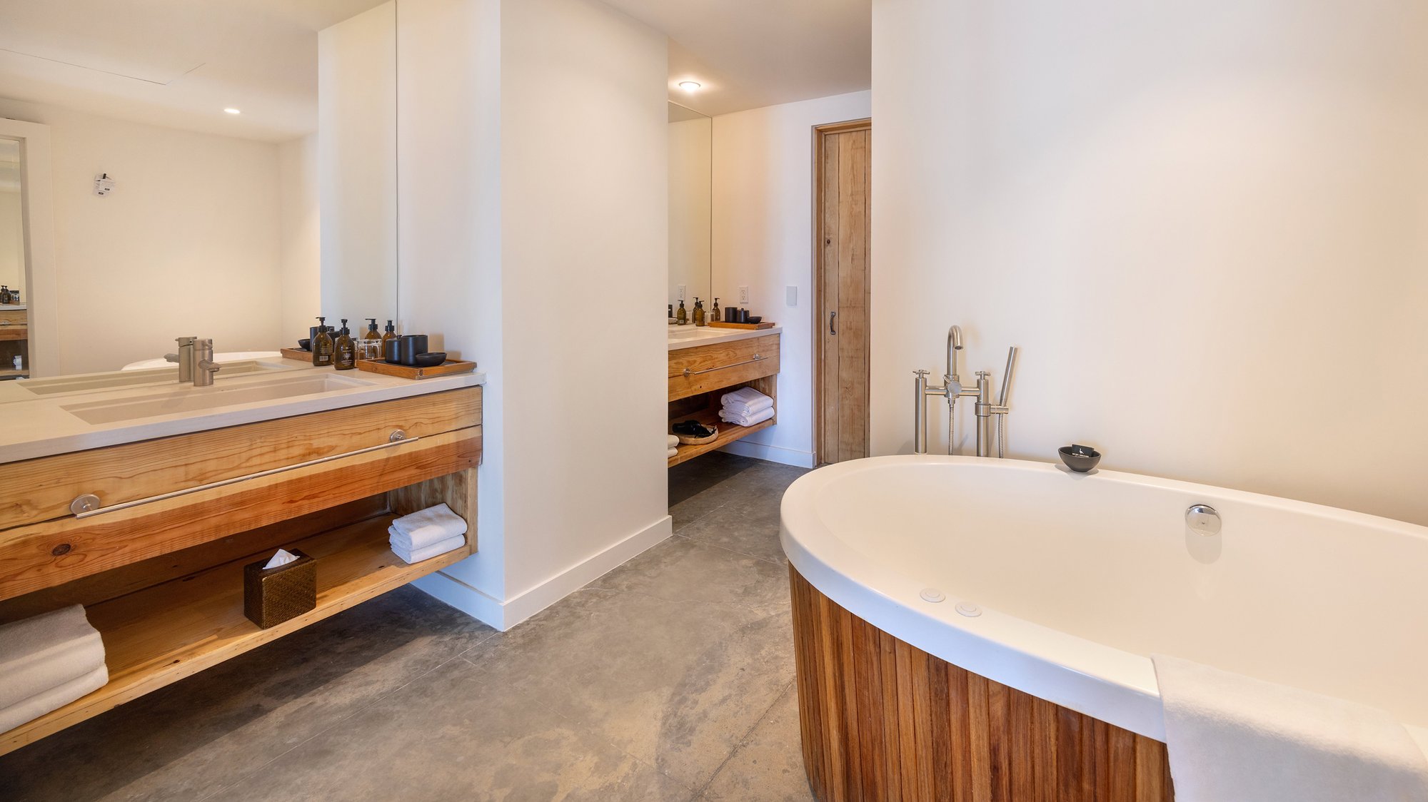 Two bedrooms. One shared sanctuary. Designed for families or close friends who want connection with a side of privacy, this suite features generous living areas, artisan details, and a flow that supports both gathering and stillness. The ocean’s always just outside—ready when you are.