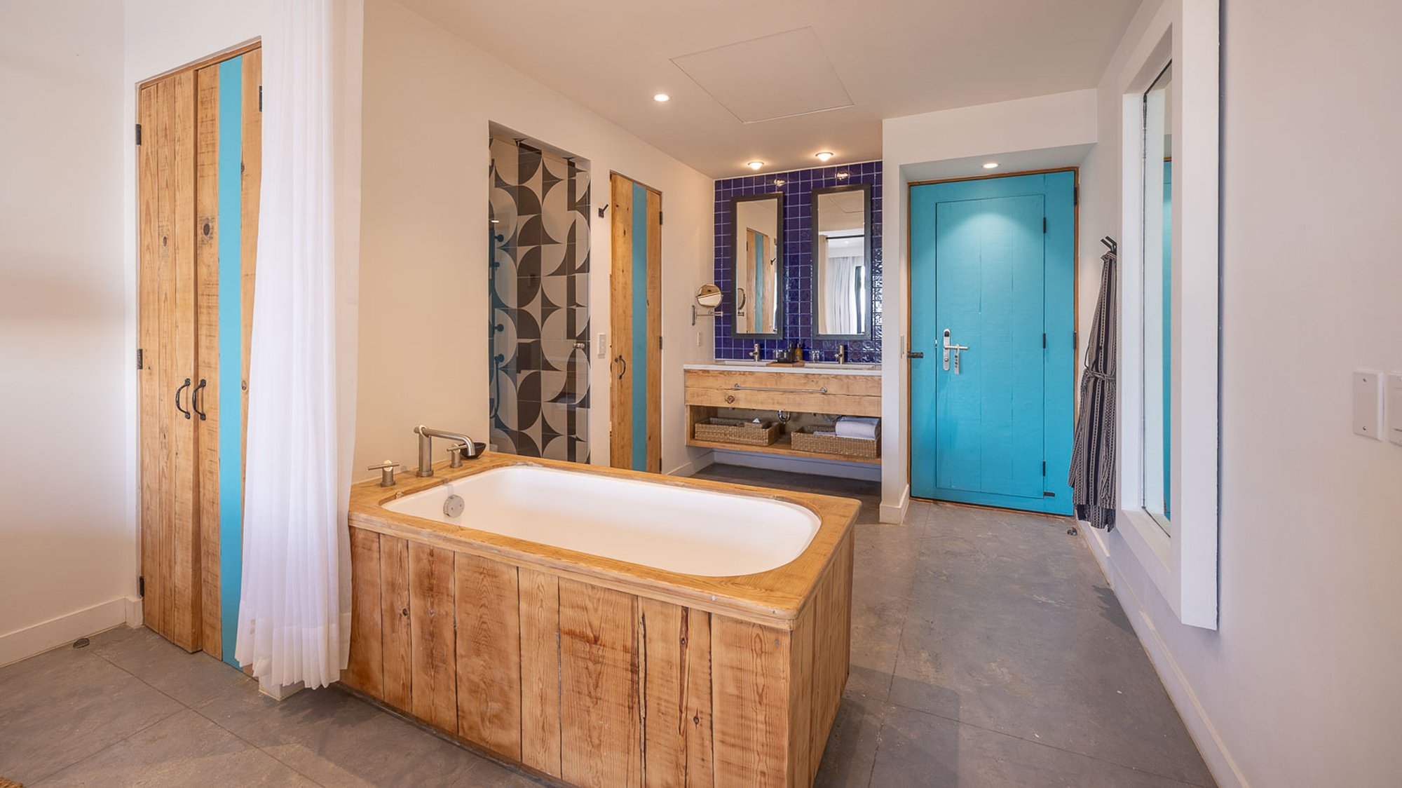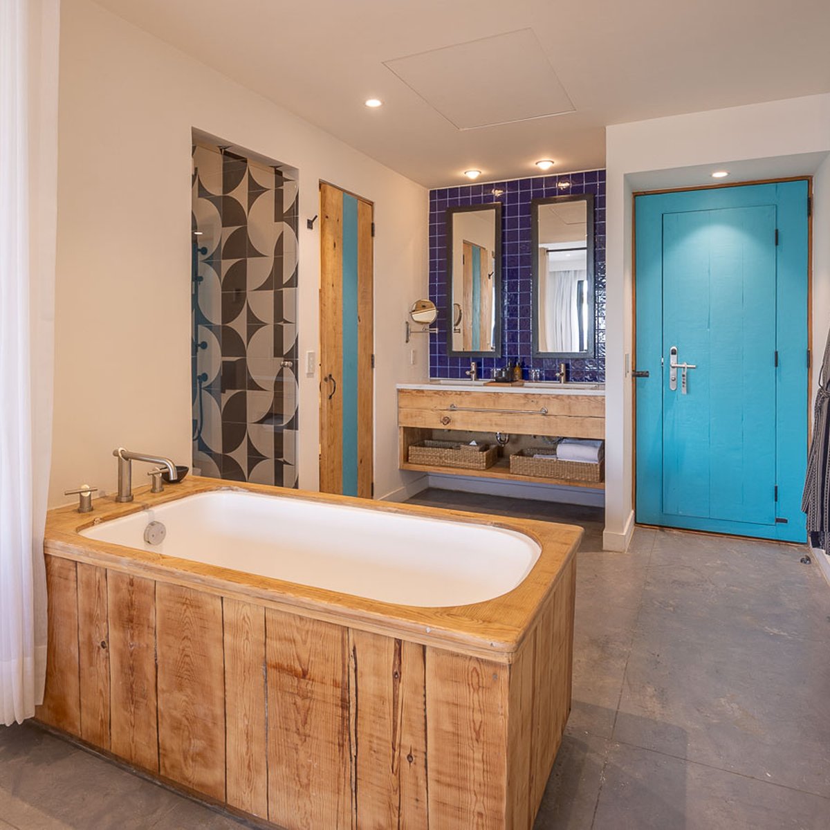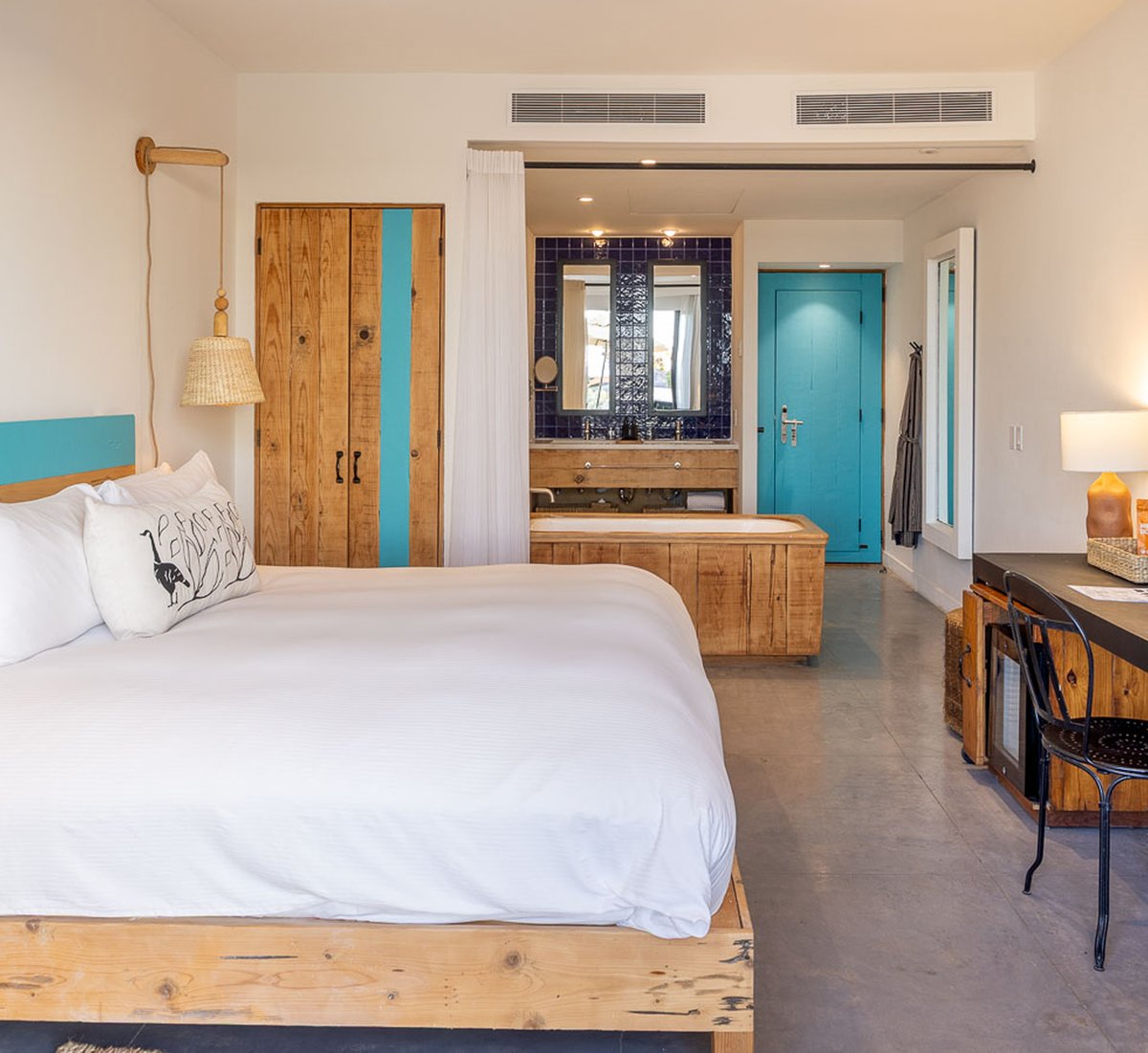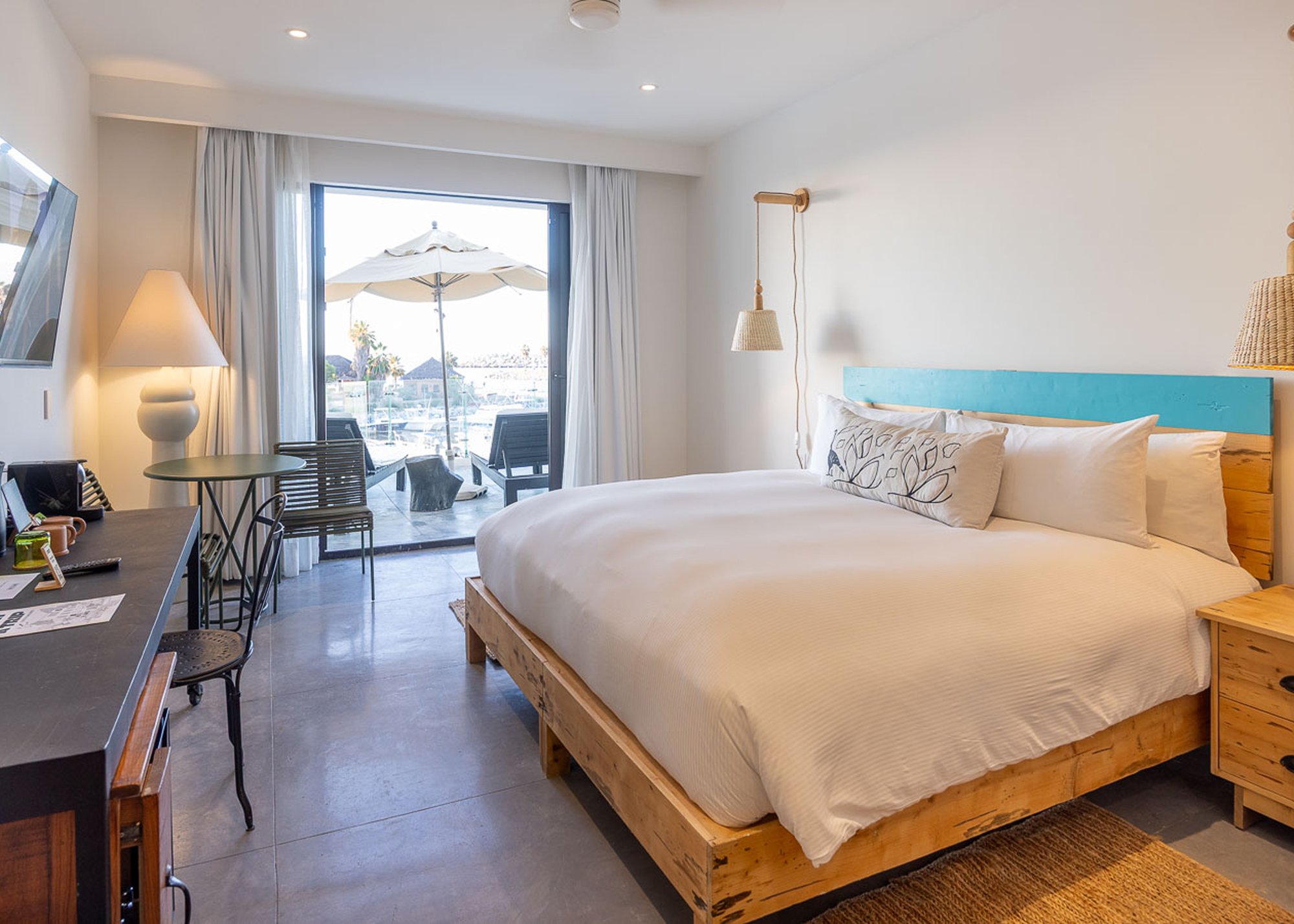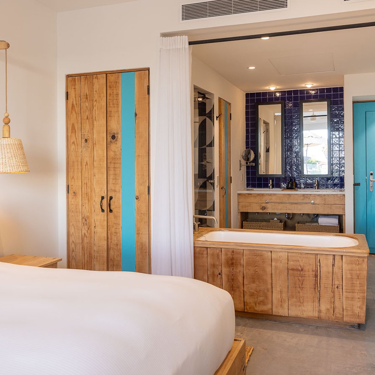 Step outside and into your own Baja rhythm. With a private terrace, this room blurs the line between comfort and nature. Inside, the King bed and spacious layout offer room to stretch, while details like artisan salts and a Marshall speaker add warmth and character. Perfect for morning rituals, midnight soaks, and everything in between.